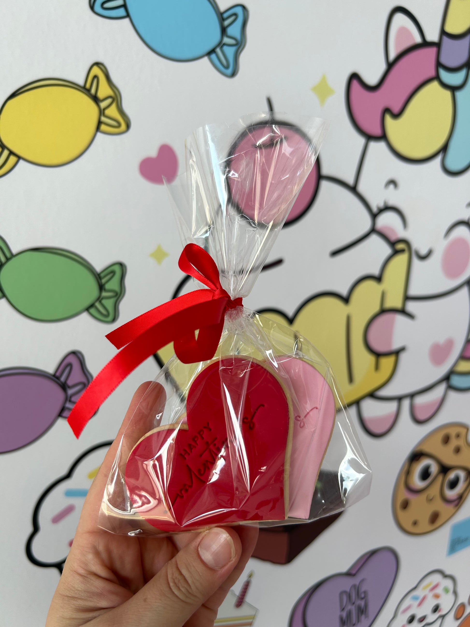 2 x heart "happy valentines" cookies
